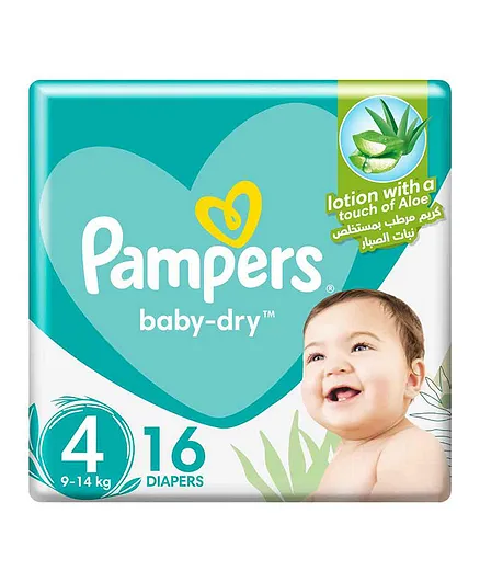 Pampers Baby-Dry Tape Style Diapers with Aloe Vera, 16 Pieces, Size 4, 9-14kg