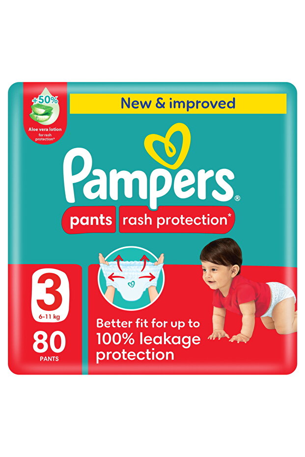 Pampers Rash Protection Pants Diapers, Size 3, 6-11kg, Giant Pack, 80 pcs All-Day Dryness for Delicate Skin